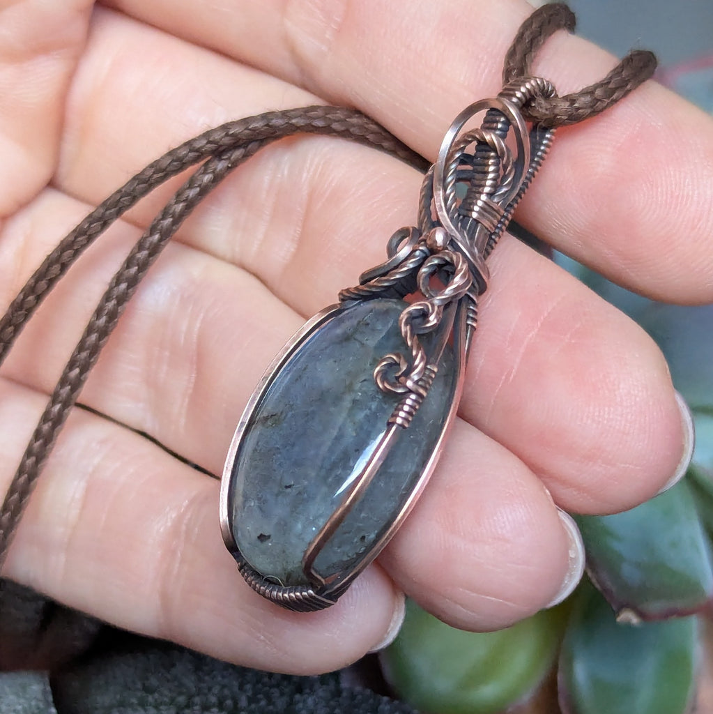 Labradorite Wire Wrapped Oxidized Copper Pendant