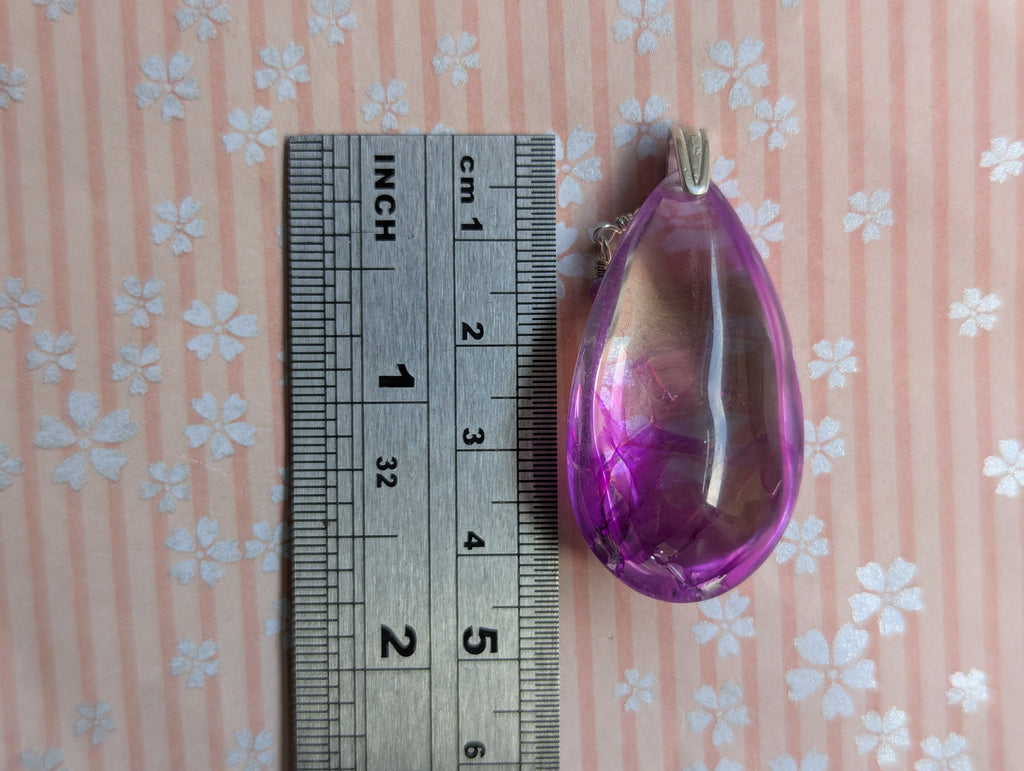 The bail and wire are solid sterling silver. The cord necklace is included, it is nylon and is adjustable roughly 18"-20". Please note that silver naturally darkens with age and if necessary may be cleaned to lighten it back up, a polishing pad is included. The last photo shows back of the pendant, it is next to a ruler for size comparison.