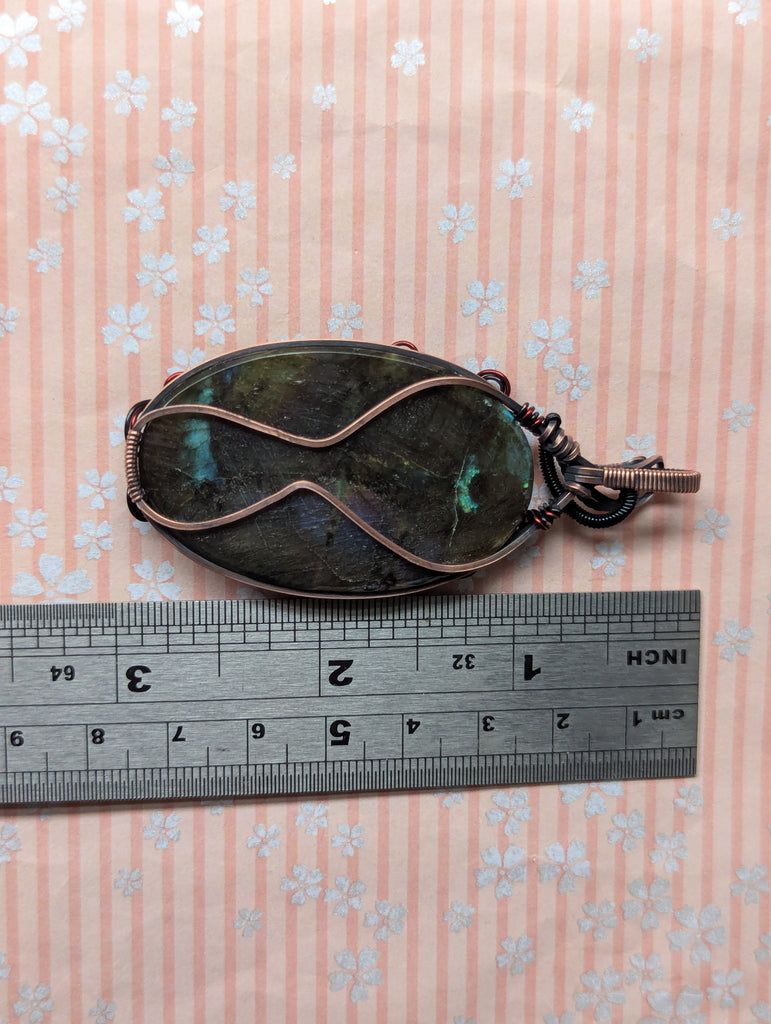 Labradorite Wire Wrapped Enamelled Copper Pendant