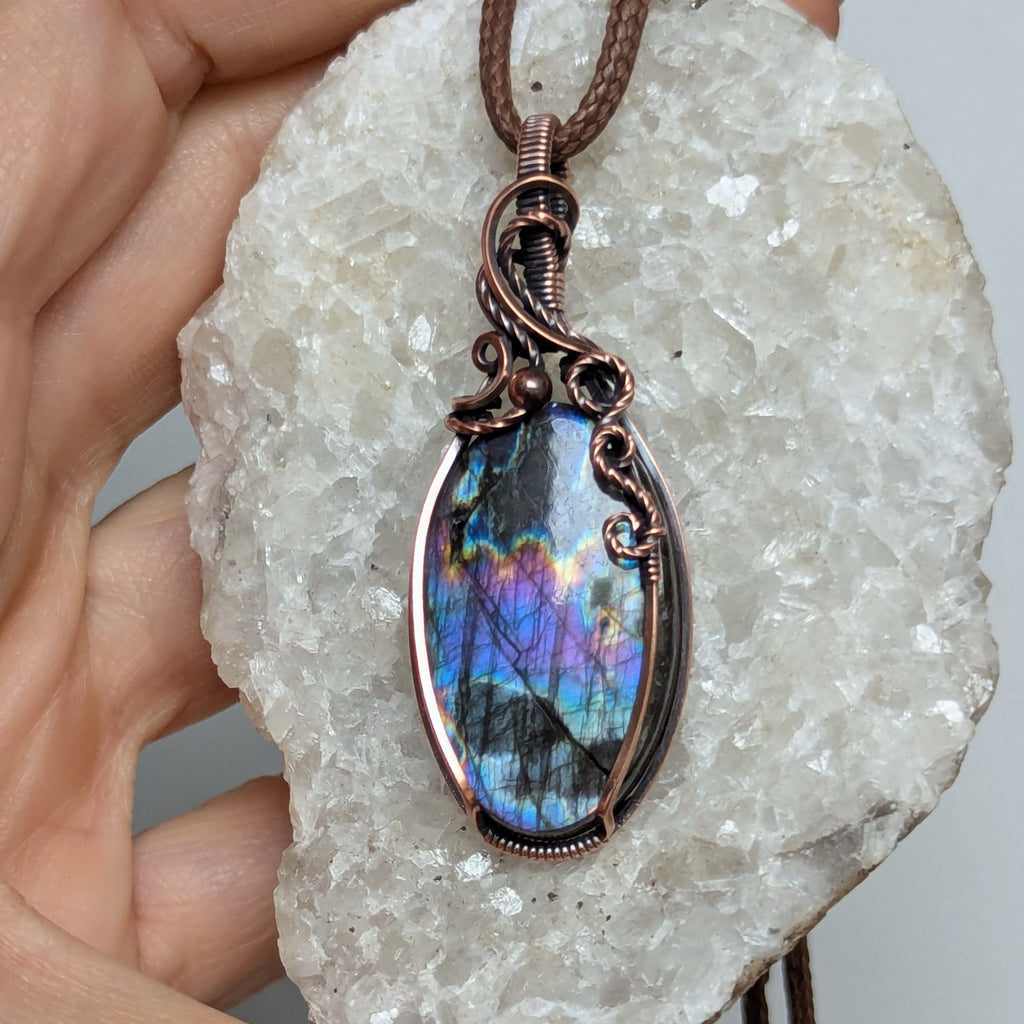 Labradorite Wire Wrapped Oxidized Copper Pendant