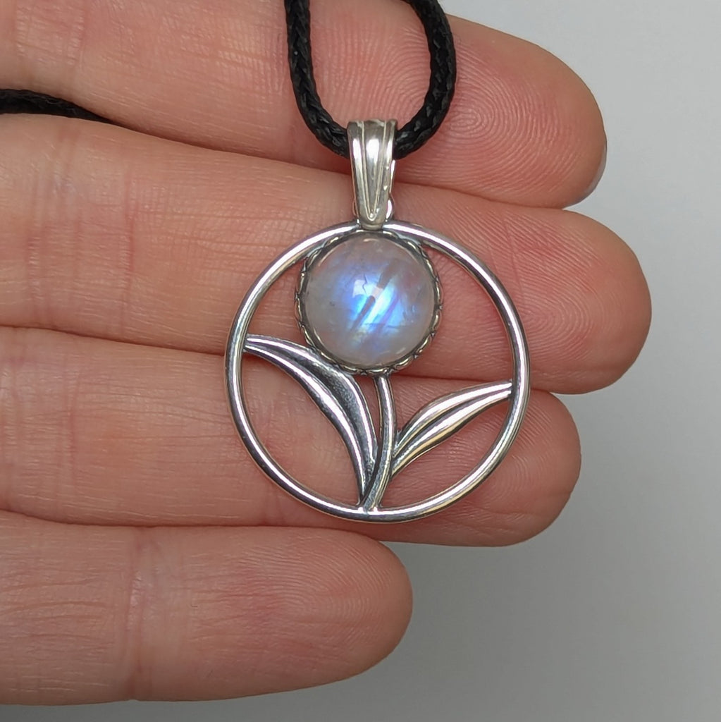 Rainbow Moonstone Flower Pendant in Sterling Silver