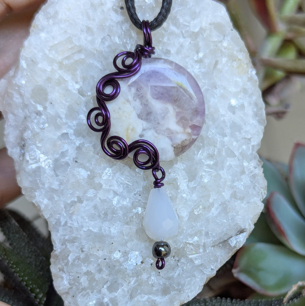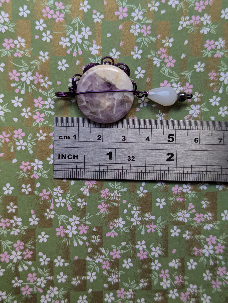 Amethyst Wire Wrapped Enamelled Copper Pendant