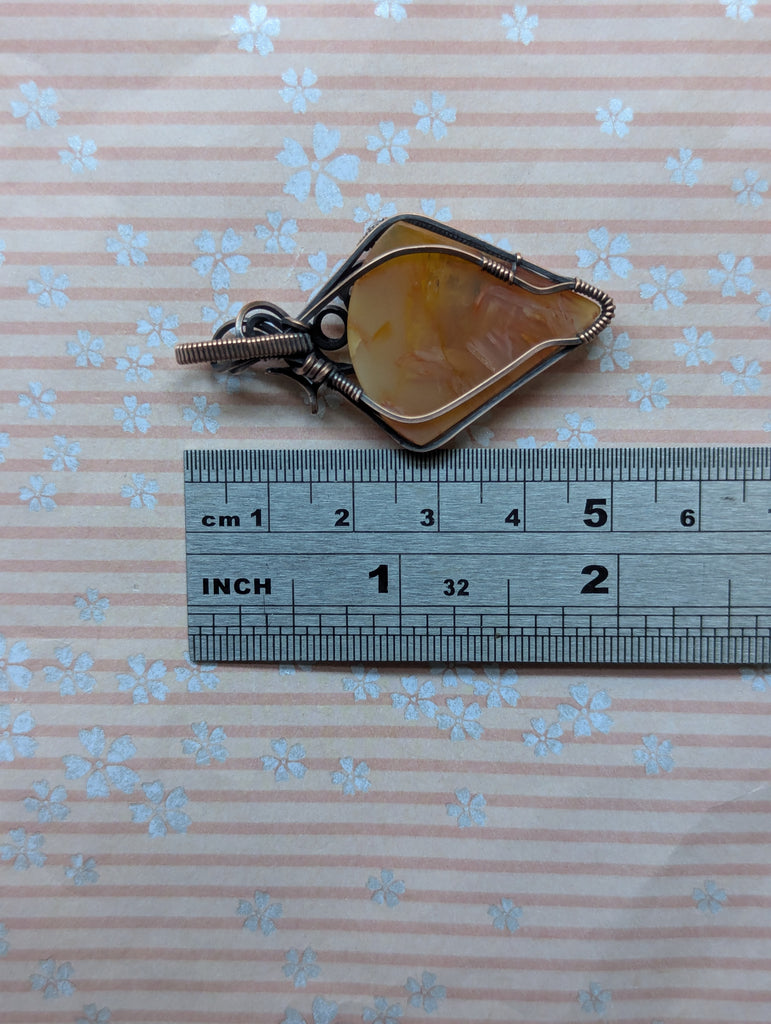 Tube Agate Wire Wrapped Pendant in Oxidized Copper